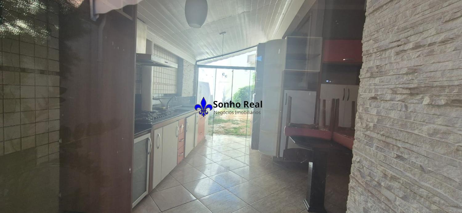 O imóvel possui 2 quartos (1 com móvel planejado ), sala, cozinha (com móveis planejados), 2 banheiros, área gourmet com churrasqueira e lavanderia, garagem para 2 carros, com portão eletrônico, cascata e câmeras.